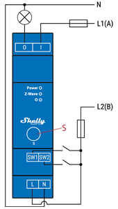 The Device is a DIN rail mountable smart switch with potential-free contacts. It controls the on/off function for one electrical device with a load up to 16 A. It is compatible with switches (default) and push-buttons.